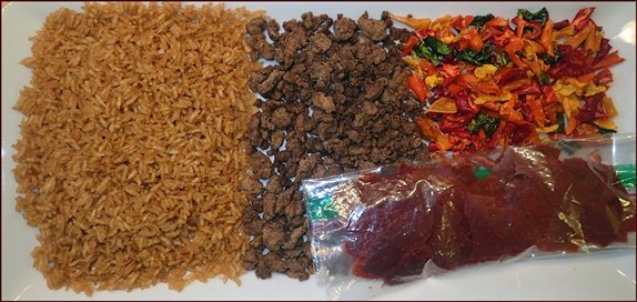 | Hello, Many of my backpacking meals follow the familiar formula of combining a starch, protein, and vegetable with a flavor or sauce component. Unstuffed peppers is a classic example where ground beef provides the protein element.