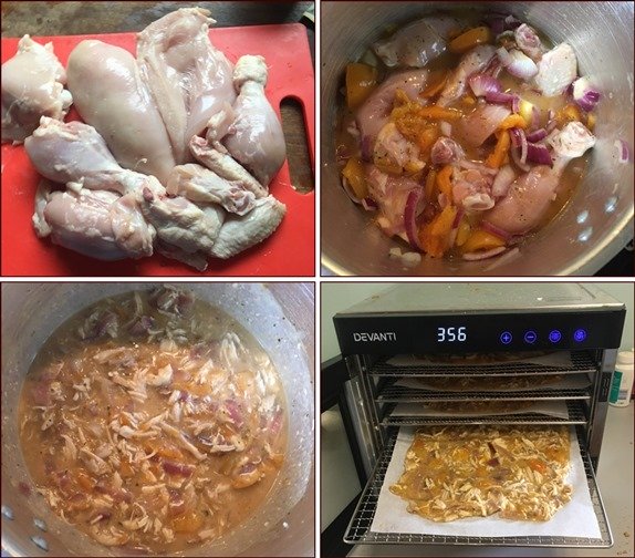 For those who say “yuck,” to imitation meat, I invite you to try the chicken. Our Australian bushwalking friend, Neil Bellamy, shares his method of pressure-cooking and dehydrating a whole chicken with an apricot chicken recipe. Thanks Neil!